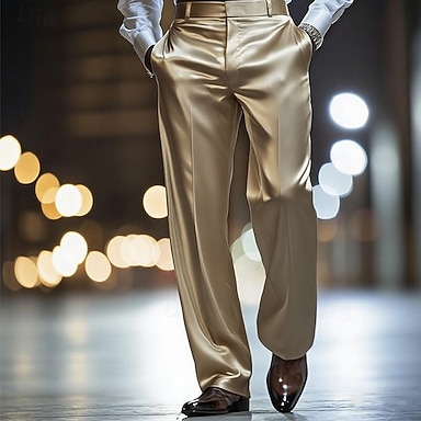 Herren Hose Anzughose Seidenartig Satinhosen Baggy-Hosen Tasche Gerader Schnitt Einfach Atmungsaktiv Volle Länge Hochzeit Party Geschäft Mode Streetwear Weiß Gold Mikroelastisch
