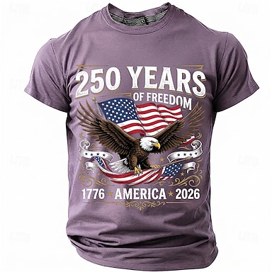 250 Jahre Freiheit 1776–2026 – Patriotisches Herren-T-Shirt im Vintage-Stil mit Weißkopfseeadler und amerikanischer Flagge, Rundhalsausschnitt, Kurzarm, ideal als Geschenk zum Unabhängigkeitstag am 4.