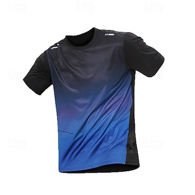 Herren Farbverlauf Lauf-T-Shirt Kompressionsshirt Laufshirt Sommer Kurzarm Schnelltrocknend Kompression Feuchtigkeitsableitend Fitnesstraining Aktives Training Übung Blau Dunkelgrau Schwarz