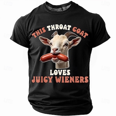 Herren Kurzarm Grafik-T-Shirt - Lustiger Erwachsener Humor Kehle Ziege Saftige Würstchen Design
