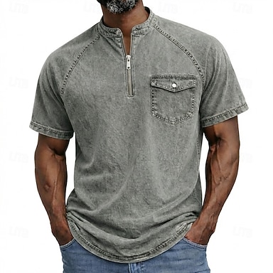 Herren Henley Hemd Hemd aus 100 % Baumwolle in Säurewaschung Kurzarm Einfach Einheitliche Farbe Vintage Retro Vintage Lässig Reißverschluss Vintage-Stil Stückgefärbt Henley Lässig Frühling & Sommer