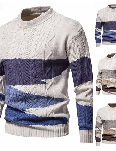 Herren Pullover Kleid Pullover Strickpullover Gerippt Zopfmuster Stricken Normale Oberteile Farbblock Gestrickt Gestreift Rundhalsausschnitt Vintage Modern Lässig Alltagskleidung Bekleidung Herbst