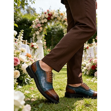 Herren-Brogue-Schuhe im Wingtip-Stil aus echtem Leder – zweifarbiger Schnürschuh mit Krokodilprägung für Bankette, Vintage-Mode und Abendpartys