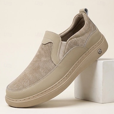 Beigefarbene Herren-Sneaker zum Hineinschlüpfen – bequeme Sommerschuhe, weich und atmungsaktiv, ideal für Alltag, Reisen, Freizeit im Freien und einen entspannten Sommerlook.