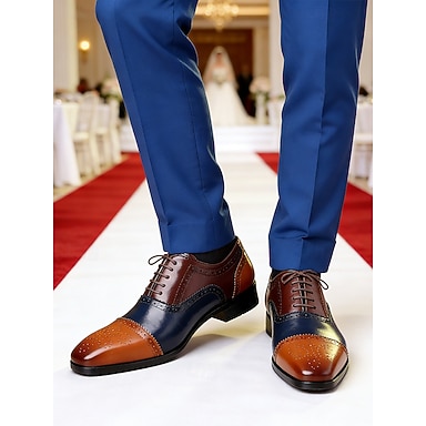 Hochzeitsschuhe für Herren aus Kunstleder, zweifarbiges Schnürdesign, perfekt für Bräutigam und Trauzeugen bei Hochzeiten