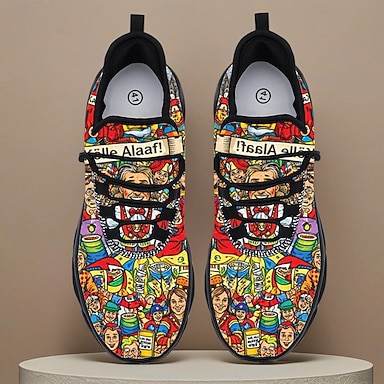 Lustige, hässliche Weihnachtsschuhe für Herren: Sneaker mit 3D-Druck, Cartoon-Motiv und festlichem Schneeflockenmuster