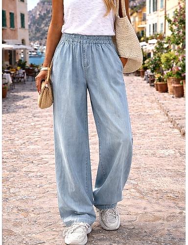 Damen Jogginghose Weites Bein Chinos Urlaub Mode Streetwear Volle Länge Hohe Taille Einfach Elastischer Bund Bequem Komfort Weich Dehnbar Täglich Outdoor Straße Blau Sommer Frühling Herbst Lässiger
