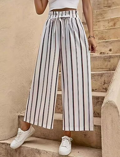 Damen Weite Hosenbeine Chinos Urlaub Streetwear Lässig Volle Länge Mittlere Taillenlinie Gestreift Kordelzug Streifen Bequem Mikroelastisch Täglich Outdoor Straße Schwarz Weiß Rosa Hellblau Sommer