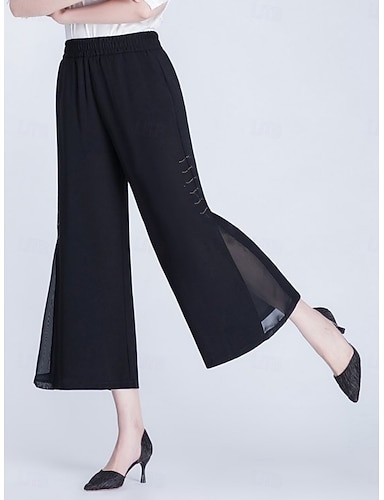Damen Caprihose Weites Bein Hose Freizeithose Urlaub Mode Streetwear Knöchellang Hohe Taille Einfach Elastischer Bund Bequem Atmungsaktiv Unelastisch Täglich Urlaub Straße Schwarz Khaki Sommer