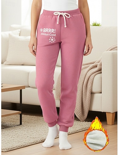 Damen Jogginghose Fleecehose Stoffhosen Mode Basic Lässig Volle Länge Hohe Taille Buchstabe Kordelzug Tasche Druck Thermowarm Winddicht Bequem Dehnbar Urlaub Straße Lässig Schwarz Rosa Dunkelpink Blau