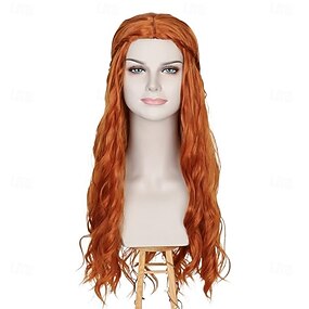 Lange, gewellte, ingwerrote Damenperücke im mittelalterlichen Renaissance-Hippie-Halloween-Kostümstil