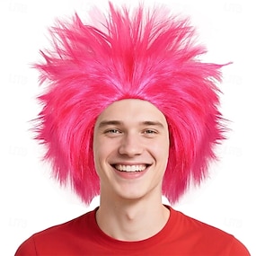 Karnevalsperücke 2026 Rosa Rot Blau Glatt Kurz Synthetische Festivalperücke Karneval Parade Cosplay-Kostümfrisur für Herren