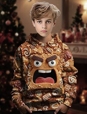 Weihnachten Jungen 3D Grafik Lebkuchenmänner Kapuzensweatshirt Langarm Frühling Herbst Mode Streetwear Kinder 4-12 Jahre Mit Kapuze Outdoor Lässig Täglich Normale Passform
