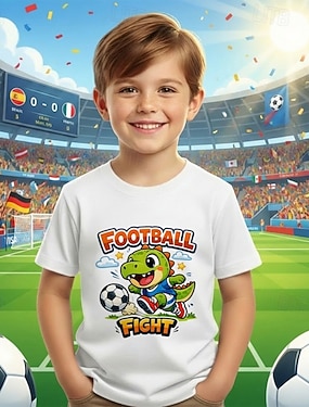 100% Baumwolle Kinder Jungen Weiß Grafik Dinosaurier Fußball Fußball-T-Shirts T-Shirt Bluse Rundhalsausschnitt Kurzarm Outdoor Alltagskleidung Mode Streetwear Designer Drucken Sommer