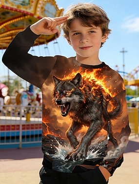 Jungen 3D Grafik Wolf Sweatshirt Pullover Langarm 3D-Druck Frühling Herbst Aktiv Mode Streetwear Kinder 4-12 Jahre Rundhalsausschnitt Lässig Täglich Outdoor Normale Passform