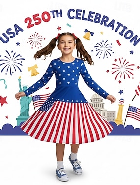 Mädchen 3D Grafik 250-jähriges Jubiläum T-Shirt Kurzarm 3D-Druck Sommer Frühling Sport Mode Streetwear Kinder 4-12 Jahre Rundhalsausschnitt Lässig Täglich Outdoor Normale Passform