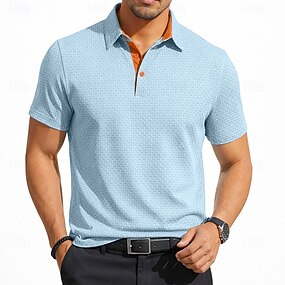 Herren Geometrisch Poloshirts Kurzarm Polo-Shirts Hemden mit Kragen Lässig Athleisure Knöpfe Sommer Frühling Blau Purpur Grau