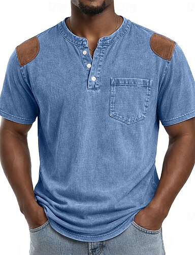 Herren Jeans hemden Hemd aus 100 % Baumwolle in Säurewaschung Henley Oberteil Kurzarm Vintage Betrübt Lässig Heim Straße Herbst Winter Sommer Frühling Schwarz Rosa Leicht Grün Grau Hellblau