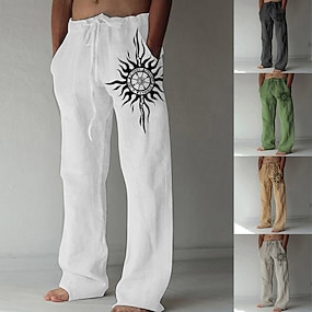 Herren Hose Sommerhose Strandhose Gerade Kordelzug Elastischer Bund Fronttasche Grafikdrucke Komfort Weich Lässig Täglich Strand Mode Designer Weiß Grün