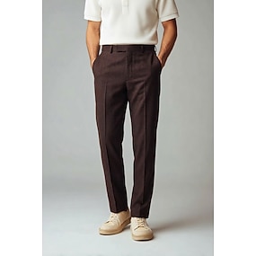 Herren Baumwolle Leinen Anzughose Freizeithose Geschäft Formell Klassisch Lässig Armee-Grün Dunkelmarine Schokolade Frühling & Sommer Hosen Einfarbig Normale Passform Lang Unelastisch