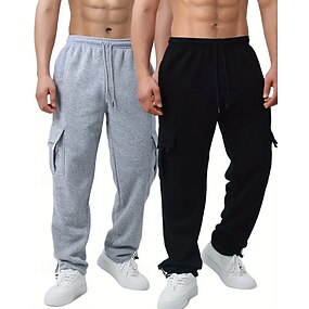 Mehrfachpackungen 2St Herren schwarz+dunkelgrau Jogginghose Cargo-Jogginghose Kordelzug Elastischer Bund Einfach Urlaub Alltagskleidung Polyester Herbst