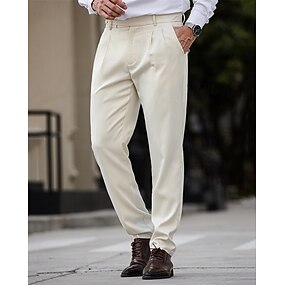 Herren Hose Anzughose Stoffhosen Faltenhose Reißverschluss Tasche Knöpfe Einfach Komfort Weich Hochzeit Outdoor Täglich Mode Lässig Schwarz Weiß