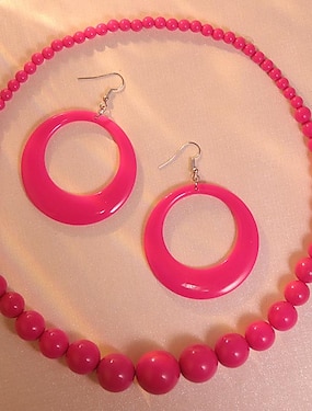 Statement-Ohrringe und Halskette im Boho-Stil aus Acryl im Retro-Look für Damen im 80er-Jahre-Stil
