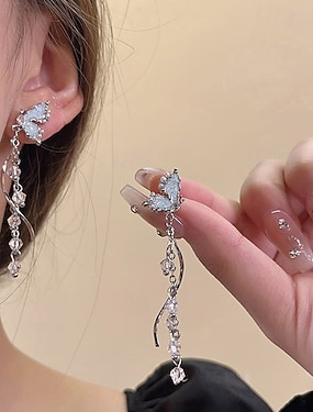 elegante Schmetterlings-Ohrhänger – lange silberne Ohrhänger mit Kristallakzenten für Damen