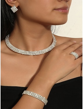 4-teiliges Strass-Schmuckset für Damen – glitzernde Halskette, Ohrringe, Armband und Ring für Gesellschaftstanz, Cocktailpartys und formelle Anlässe