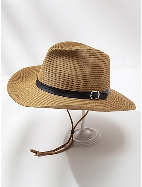 Faltbarer Cowboyhut aus Stroh für Herren mit schwarzem Band – Sommer-Western-Outdoorhut für Strand, Reisen und Freizeit
