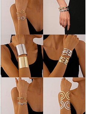 Party-Armbandset für Damen – stilvolle vergoldete und versilberte Armreifen und Kettenarmbänder, modischer Statement-Schmuck für Damen, perfekt für Cocktail- und Abendpartys