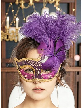 Damenschuhe mit Feder-Venezianischer Maskerade Maske - Bunte Mardi Gras Stil Kostüm-Zubehör für Karnevalspartys Cosplay festliche Veranstaltungen