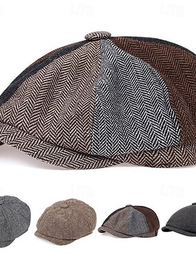Schiebermütze im Vintage-Patchwork-Stil mit Fischgrätenmuster für Herren – klassische Tweed-Zeitungsjungenmütze für Herbst und Winter