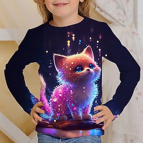Mädchen 3D Katze T-Shirt Hemd Langarm 3D-Druck Frühling Herbst Aktiv Modisch Kuschelig Polyester kinderkleidung 3-12 Jahre Rundhalsausschnitt Outdoor Casual Täglich Regular Fit