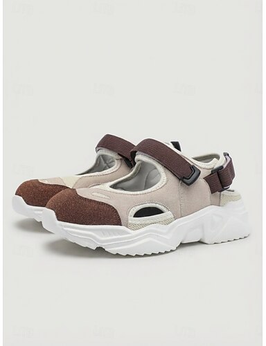 Beigefarbene, klobige Sportsandalen für Damen – atmungsaktives Design mit Cut-outs, verstellbarer Haken &Schlaufenriemen, gepolsterte Plateausohle, bequeme Wanderschuhe für draußen &Alltagskleidung
