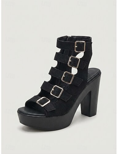 Schwarze, klobige Damen-Plateausandalen mit hohem Absatz – Gothic-Sandalen mit mehreren Schnallenriemen und seitlichem Reißverschluss für Open-Air-Musikfestivals, Rave-Partys und Konzertoutfits