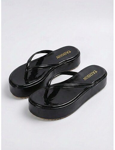Plateau-Flip-Flops für Damen – glänzende Zehentrenner mit dicker Sohle, wasserdichte Slipper zum Hineinschlüpfen für Pool, Strand und Urlaub im Resort