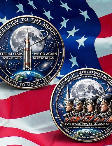 Gedenkmünze zur Artemis-II-Mondmission 2026 – Hommage an die Erde und den Mond, Sammlerstück für Astronauten und Raketen, Erinnerungsstück an die historische Mondlandung