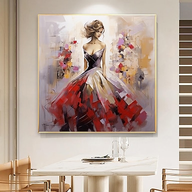 Handgefertigtes Original-Ölgemälde mit wunderschönen Mädchen auf Leinwand, Wandkunst, Porträtkunst, rot, für Heimdekoration, mit gespanntem Rahmen/ohne Gemälde mit Innenrahmen