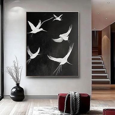 Originales, handgemaltes Ölgemälde auf Leinwand: Ein fliegender Vogel in Schwarz-Weiß. Abstraktes Tiermotiv, moderne Wohnzimmerdekoration, Geschenk für Friedensliebhaber.