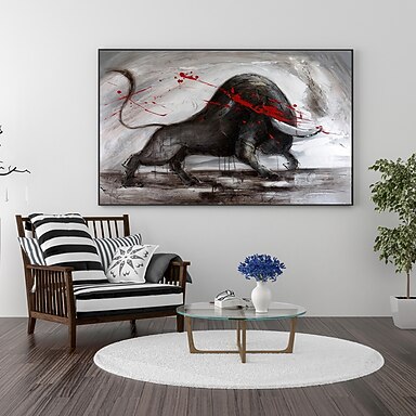 Handgemachtes Ölgemälde auf Leinwand, Wandkunst, Dekoration, modernes Tier, Stierkampf für Wohnkultur, gerolltes, rahmenloses, ungedehntes Gemälde