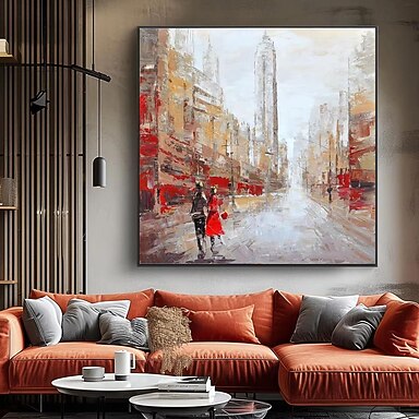 handgemachtes Ölgemälde auf Leinwand, Wandkunst, Dekoration, zeitgenössische urbane Architektur, Landschaft für Zuhause, Tanzstudio, Dekor, gerollt, rahmenlos, ungedehntes Gemälde