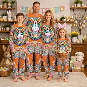 Familie Ostern Schlafanzug Grafik Hase Lässig Druck Orange Langarm Urlaub Passende Outfits