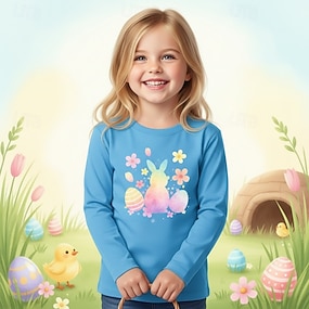 Ostern Mädchen 3D Grafik Tiermotiv Kaninchen T-Shirt Langarm Frühling Herbst Mode Basic Kinder 4-12 Jahre Rundhalsausschnitt Outdoor Lässig Täglich Normale Passform