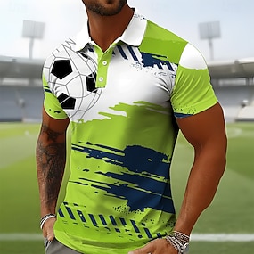 Fußball-Pokal 2026 Herren Fußball Poloshirts Kurzarm Polo-Shirts Revers Lässig Athleisure Ferien Alltagskleidung 3D-Druck Knöpfe Atmungsaktives Gewebe Frühling & Sommer Blau Grün