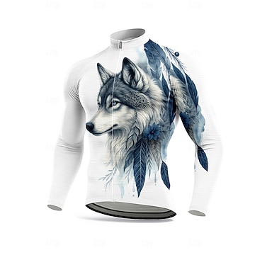 Herren Oberteile Radtrikot Grafik Wolf Tiermuster Druck Langarm Fahhrad Trikot Oberteil mit 3 Gesäßtaschen Sonne Sonnenschutz Schnelltrocknend Reflektierende Streifen Sport Blau Bekleidung