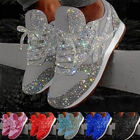 Damen Silber Glitzer Sneaker Mesh Schnürer mit bequemer Sohle