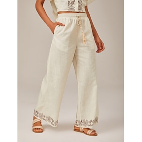 Damen Kunstbaumwollleinen Sommerhose Hosen Hose Alltagstauglich Volle Länge Natürliche Taille Einfach Kordelzug Seitentaschen Atmungsaktivität Bequem Unelastisch Ausgehen Wochenende Blau Schwarz Wei