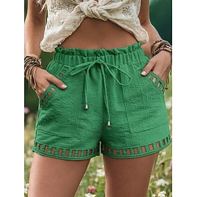 Damen Shorts aus Baumwollleinen Leinen-inspirierte Shorts Shorts Sommershorts Urlaub Mode Lässig Kurz Mittlere Taille Kordelzug Tasche Komfort Weich Atmungsaktiv Dehnbar Outdoor Strand Ferien Schwarz