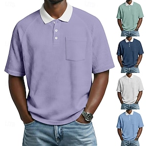 Herren Waffel-Poloshirts Textur Lässig Klassisch Kurzarm Mode Bequem Farbblock Tasche Raglanärmel Sommer Frühling Frühling & Sommer Normale Passform Schwarz Weiß Hellgrün Marineblau Purpur Khaki